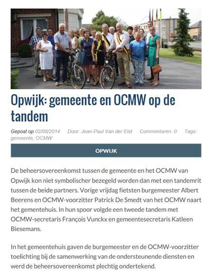 25/10/2013: Artikel magazine ‘lokaal’: OCMW’s verdienen een beter imago