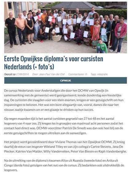 27/06/2014: Eerste Opwijkse diploma’s voor cursisten Nederlands (+ foto’s)