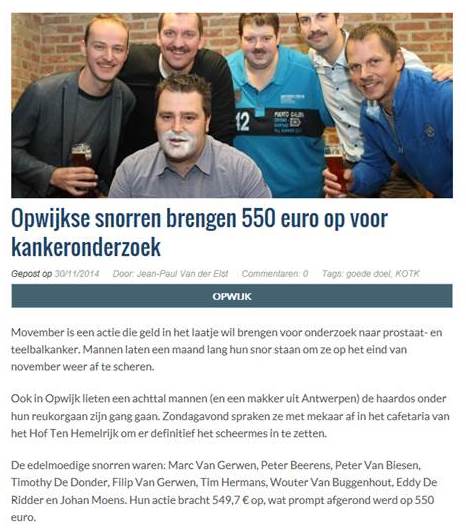 30/11/2014: Opwijkse snorren brengen 550 euro op voor kankeronderzoek