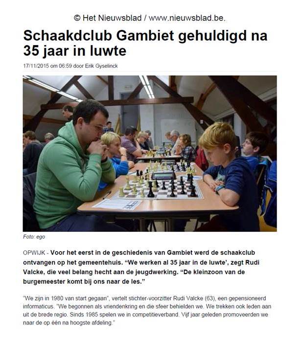 17/11/2015: Schaakdclub Gambiet gehuldigd na 35 jaar in luwte