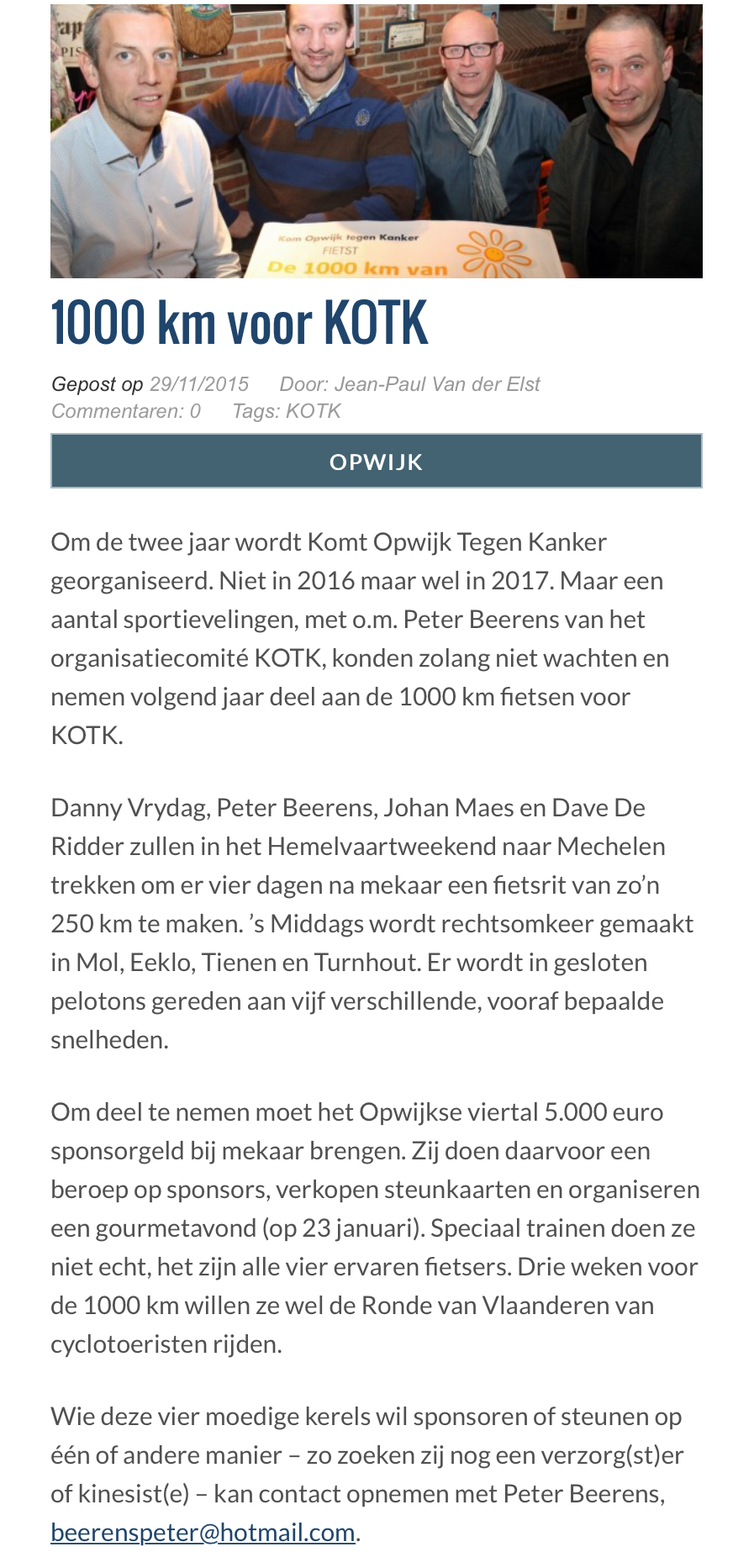 29/11/2015: Opwijk fietst 1000 km voor KOTK