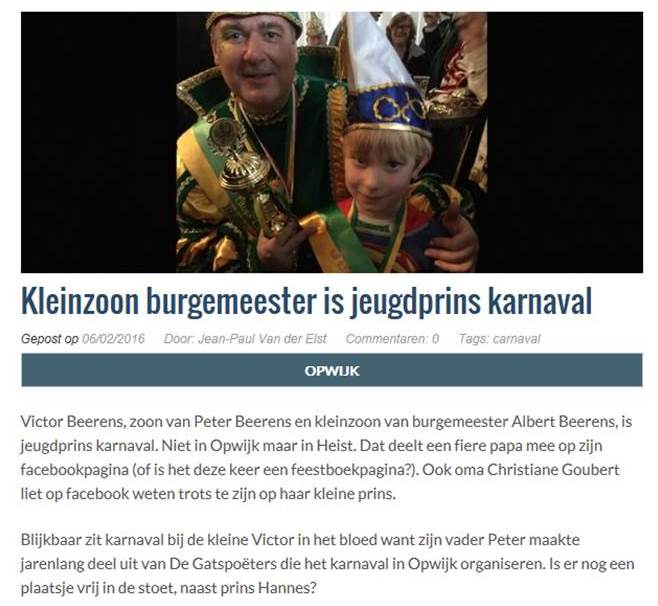 06/02/2016: Kleinzoon burgemeester is jeugdprins karnaval