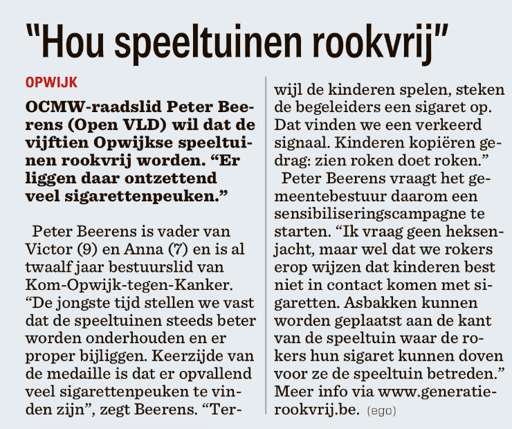 14/05/2014: Jong VLD Opwijk-Mazenzele deelt rapport uit voor speelpleintjes: Het Laatste Nieuws