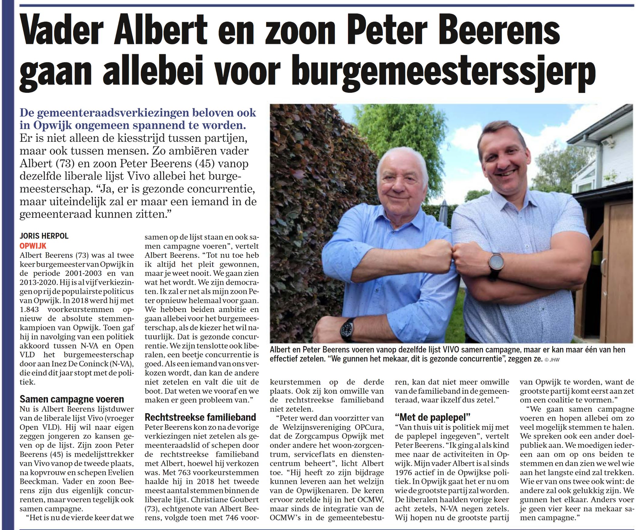 03/03/2014: Peter Beerens tiende op lijst voor Vlaams Parlement: artikel Nieuwsblad