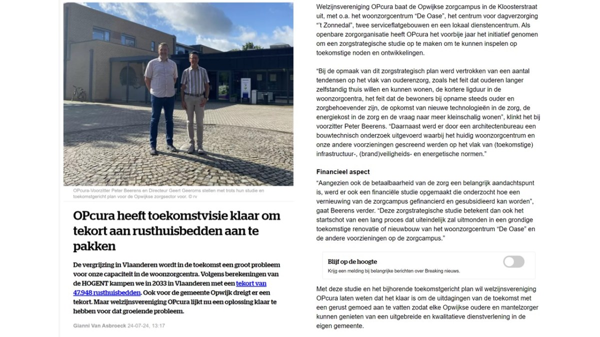 OPcura bereidt zich voor op de toekomst – HLN Gepubliceerd 26 juli 2024 at 1280 × 720 in Pers ← Vorige Volgende → Vind-ik-leuk Aan het laden...
